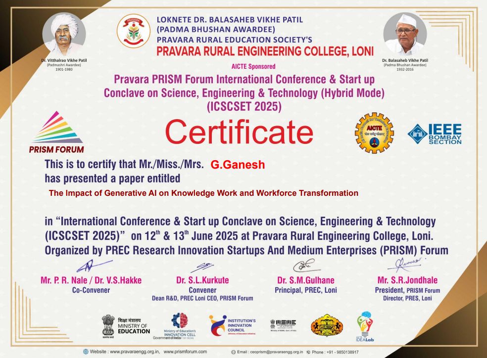 Presented a research paper at an international conference, gaining exposure to academic discussions and contributing insights on emerging technologies through professional research work.