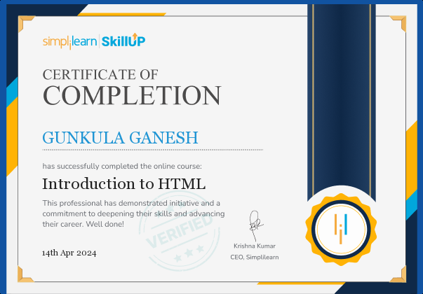 Completed an HTML fundamentals course, learning the structure of webpages, semantic tags, and essential concepts required to build clean and professional web interfaces.