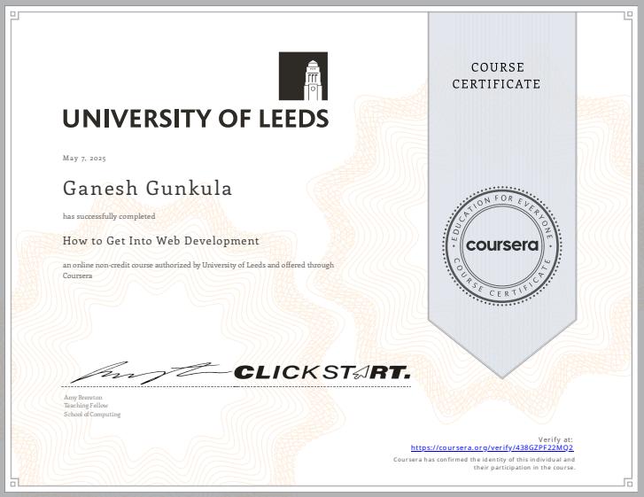 Successfully completed a Web Development course covering HTML, CSS, JavaScript, and responsive design principles to build dynamic and user-friendly websites.